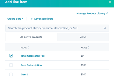 When the integration was installed, a new 'Total Calculated Tax' product was created for you. This is where the tax total is displayed for all line items.