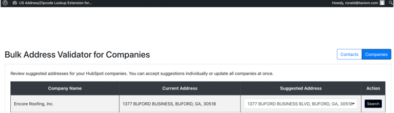After installing their add-on, it will connect to your HubSpot account, scan your company addresses, then make recommendations. You can update the addresses by clicking the 'Update Now' at the bottom of the page.
